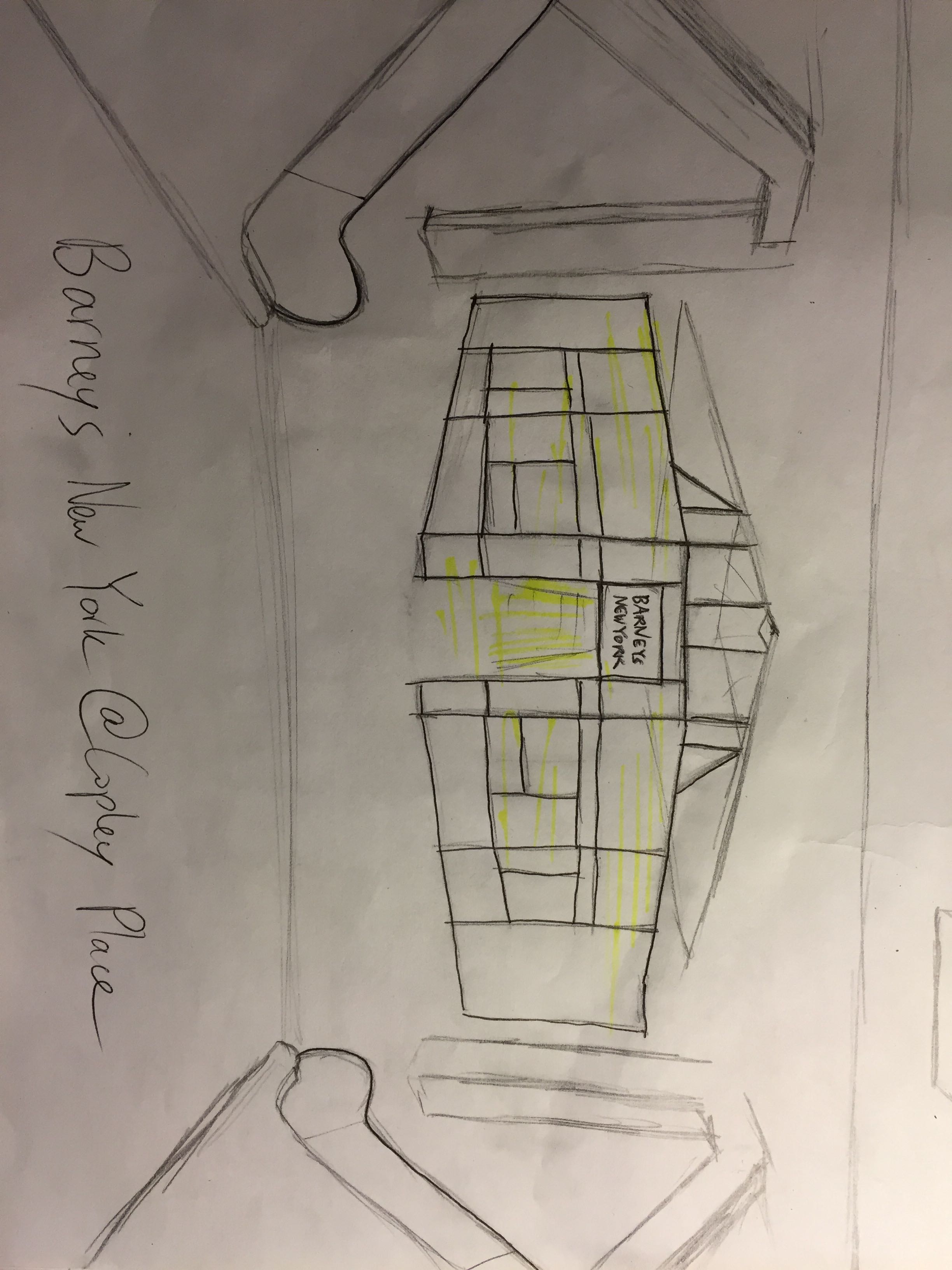 Although Newbury Street and Copley Place/Prudential Center seem like two different worlds – one outside, the other inside, one containing eclectic and contemporary brands and the other containing luxury heavyweights – the two utilize similar design strategies for their commercial purposes. On Newbury Street, every single storefront has roughly the same height and elevation, with the spaces in the buildings above the stores used as office spaces or residences. The entirety of Newbury Street has many consistent themes: red brick, at most four or five stories high, with plenty of glass storefronts. These, combined with the wide sidewalks, mimic the experience of an indoor mall. The sameness of the surroundings of each store, the glass, the freedom of space to roam – all are similar to the experience of walking through a mall. Copley Place/Prudential Center share many of these characteristics, although there are some specific differences. Copley Place has a low ceiling for many of the stores, providing an intimate atmosphere for luxury shoppers used to personal attention, while Prudential Center has a high ceiling for its generally more accessible brands. The indoor malls have clear entrances and exits, with welcome signs, whereas Newbury Street simply intersects with other streets. Newbury has no main gathering spots – it's one long street, whereas Copley has a main center with a large carving, and Prudential has a main open space next to the Microsoft store. One more interesting point of difference is the ability to escape – Newbury intersects multiple streets, each of which provide an exit, but in order to get out of Copley, a shopper has to walk back through a long, wide corridor lined with stores to make it back out.